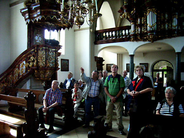 Der weitere Weg führte zur Barockkirche St. Franziskus in Vreden-Zwillbrock, direkt an der Venn-Route gelegen. Die Geschichte Zwillbrocks und der Kirche führte alle Teilnehmer im Geiste in die Zeit der Reformation und Gegenreformation zurück. Ende des 15. Jh. hatte sich in den Niederlanden der Kalvinismus als staatstragendes Bekenntnis durchgesetzt, während sich im Münsterland die katholische Kirche behaupten konnte. Mit dem Ende des 30-jährigen Krieges und dem Vorfrieden zu Münster im Jahre 1648 war die Unabhängigkeit der Niederlande anerkannt worden. Für die bedrängten Katholiken aus Groenlo und der Herschaft Borculo begann man 1651, Gottesdienste unter freiem Himmel in Zwillbrock abzuhalten. Der Besuch war überwältigend, manchmal kamen so viele Gläubige aus einem Radius von fünf Wegstunden zusammen, dass man von einer ausendköpfigen Volksmenge reden konnte, berichten alte Chroniken aus damaliger Zeit.