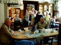 Nach einem sehr leckeren Mittagessen im Restaurant „Zum Kloppendiek“ ging es weiter zum deutsch-niederländischen Agrartourismusprojekt, dem Heimathaus Noldes im Kringdorf Ammeloe. Ammeloe wurde 1369 gegründet, der Begriff Kring bezieht sich auf die ringförmig um den Kapellenplatz (heute sehenswerte neogotische Kirche) gebauten Häuser. Diese historische Kringbebauung existiert auch heute noch und steht unter Denkmalschutz. Das kleine Ladengeschäft im Haus Noldes existiert seit etwa 1880, wurde 1972 geschlossen. Der Heimatverein Ammeloe e.V. interessierte sich 1994 für das historische Gebäude. Die Familie Noldes stellte das Haus mit gesamtem Inventar als Heimatmuseum zur Verfügung. Interessant sind die im Laden ausgestellten Waren in nostalgischer Verpackung. Das Interieur des Geschäftes ist ebenso authentisch wie das gesamte Mobiliar in der Gaststätte und die alten Schränke und Geräte in der Bäckerei. In diesem Ambiente schmeckten den Teilnehmern die von den Frauen des Heimatvereins Ammeloe selbst gebackenen Kuchen ganz besonders gut.