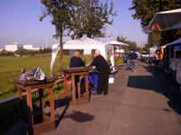Auch das leibliche Wohl kam nicht zu kurz. Es gab frisch gebackene Waffeln und selbstgebackene Kuchen, dazu Kaffee. Würstchen frisch vom Grill und am Getränkestand Bier, selbst hergestellter Holthauser Obstwein und nicht alkoholische Getränke.